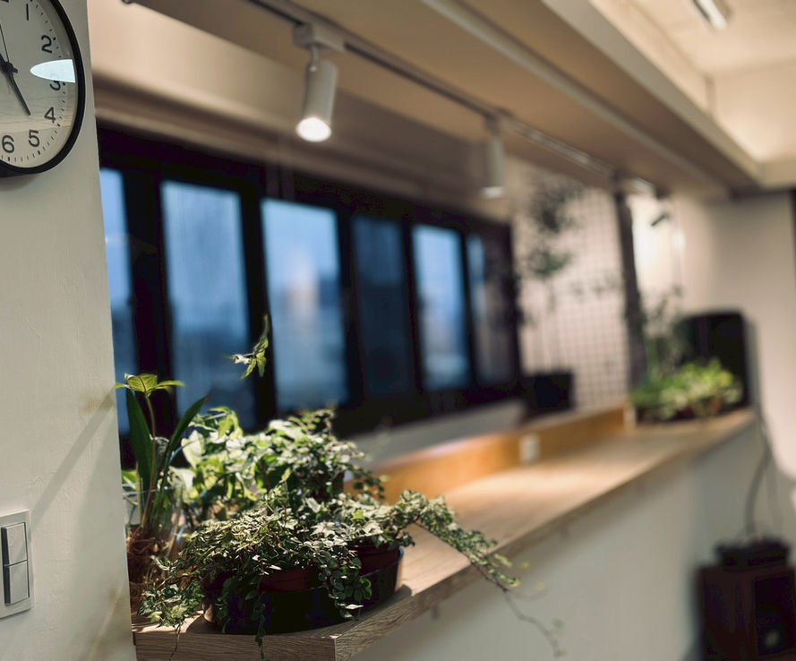 22坪使用空間,木質地板與綠色植栽落地窗,搭配溫暖色調與質感擺設,營造出寧靜舒適、簡約卻充滿生命力的氛圍。無論平日或假日 , 非常適合進行各類靜態或動態活動。